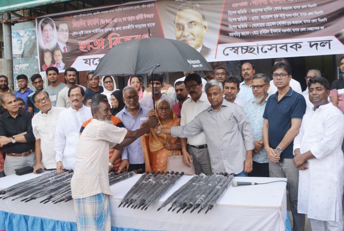 স্টাফ রিপোর্টার ॥ যশোরে মহান স্বাধীনতার ঘোষক, বিএনপির প্রতিষ্ঠাতা,শহীদ রাষ্ট্রপতি জিয়াউর রহমানের ৪২তম শাহাদতবার্ষিকীর সপ্তাহব্যাপী কর্মসূচি  সোমবার থেকে শুরু হয়েছে। এদিন জেলা স্বেচ্ছাসেকদলের আয়োজনে দোয়া মাহফিল ও শ্রমজীবী মানুষের মাঝে ছাতা বিতরণ করা হয়।