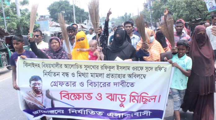 ঝিনাইদহে সুদ ব্যবসায়ীর গ্রেফতার দাবিতে অবরোধ, ঝাড়ু মিছিল
