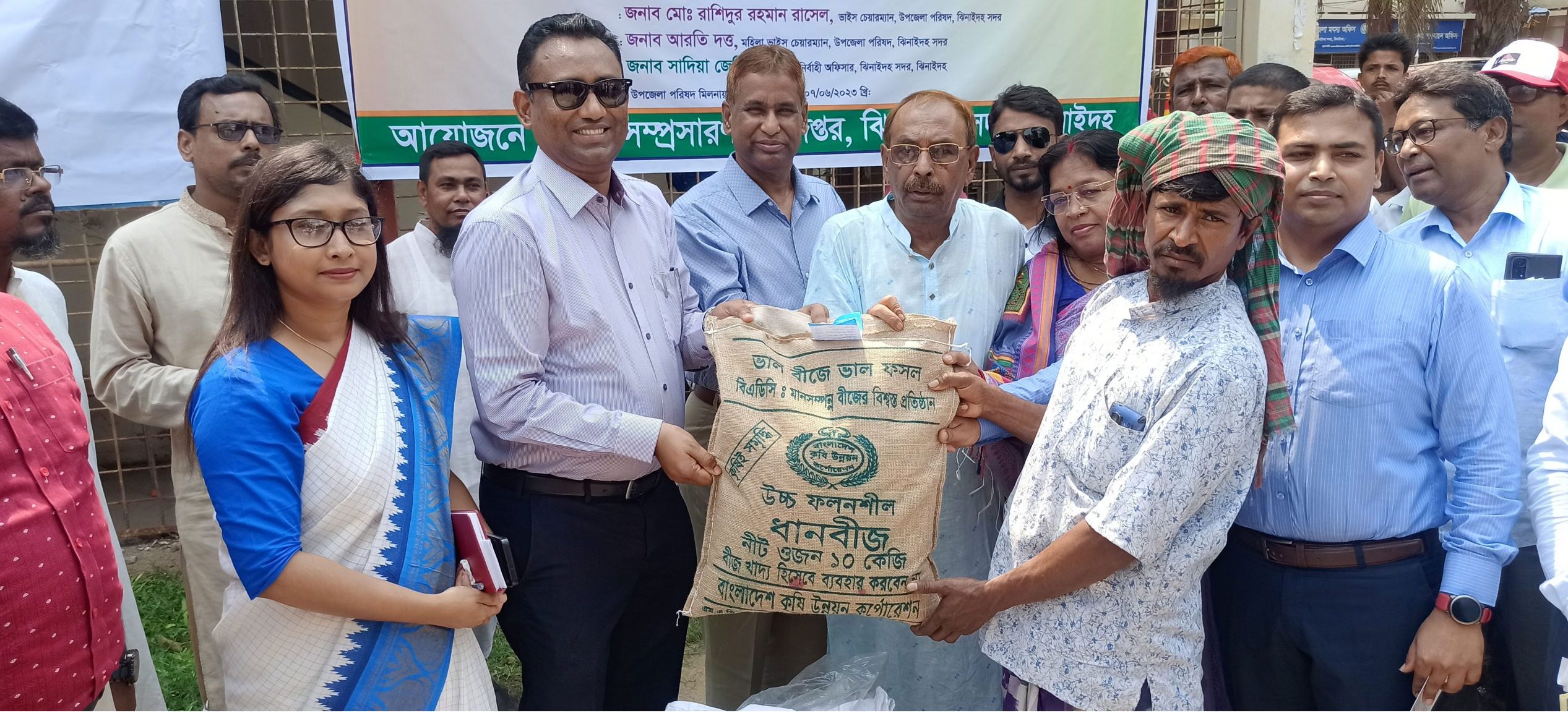 ঝিনাইদহ সদর উপজেলা নির্বাহী অফিসার সাদিয়া জেরিনের সভাপতিত্বে অনুষ্ঠানে উপজেলা পরিষদ চেয়ারম্যান আব্দুর রশীদ, জেলা কৃষি সম্প্রসারণ অধিদপ্তরের উপপরিচালক আজগর আলী, উপজেলা কৃষি কর্মকর্তা নুর-এ-নবী, মহিলা ভাইস চেয়ারম্যান আরতি দত্ত ও উপজেলা কৃষি সম্প্রসারণ অফিসার জুনাইদ হাবীব উপস্থিত ছিলেন। এ সময় সদর উপজেলার ১৭টি ইউনিয়নে ক্ষুদ্র ও প্রান্তিক ১৭ শ ৫০ জন কৃষকের মাঝে বিঘা প্রতি বিনামূল্যে ৫ কেজি বীজ ও ২০ কেজি সার বিতরণ করা হয়। সুবিধাভোগী কৃষকদের মাঝে সর্বমোট ৮.৭৫ মেট্রিক টন বীজ ও ৩৫ মেট্রিক টন সার দেয়া হয়।