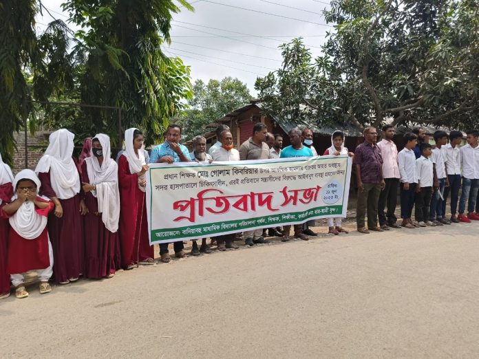 স্টাফ রিপোর্টার, ঝিনাইদহ॥ ঝিনাইদহ সদর উপজেলা বানিয়াবহু মাধ্যমিক বিদ্যালয়ের প্রধান শিক্ষক গোলাম কিবরিয়ার ওপর হামলার প্রতিবাদে মানববন্ধন ও প্রতিবাদ সভা অনুষ্ঠিত হয়েছে।