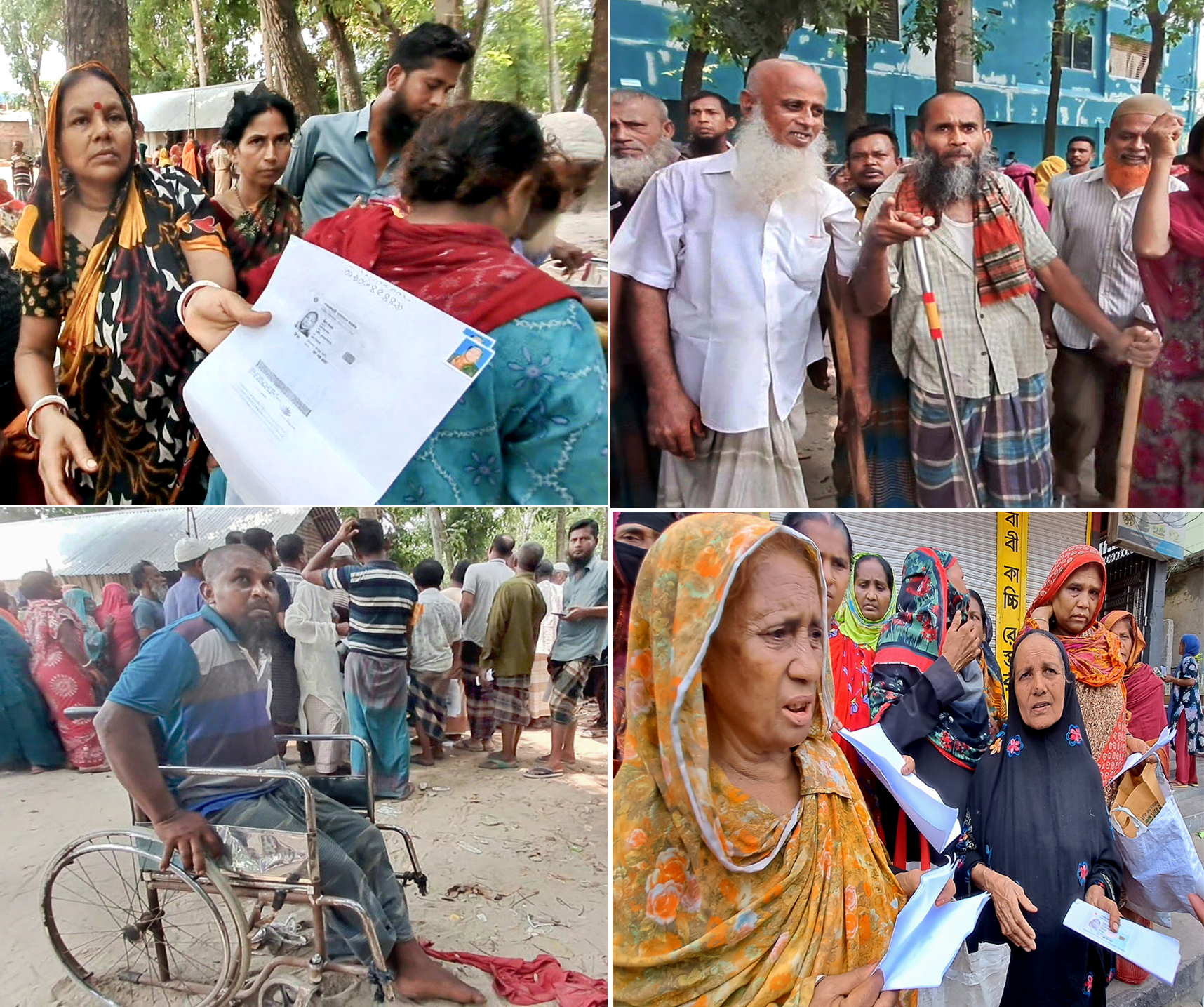 এদিকে জেলা খাদ্য নিয়ন্ত্রকের কার্যালয় সূত্রে জানা যায়, ভোক্তাদের জাতীয় পরিচয় পত্র ও ছবি জমা নেওয়ার সময় তাদের একজন প্রতিনিধি উপস্থিত থাকবেন। কিন্তু অধিকাংশ বিক্রয় কেন্দ্রে ওই প্রতিনিধিরা উপস্থিত থাকেননি। মঙ্গলবার (১৩ জুন) এই প্রতিবেদক সরেজমিন দায়িত্বপ্রাপ্ত ডিলারদের বিক্রয় কেন্দ্রে গেলে কেবল মাত্র একটি বিক্রয় কেন্দ্রে একজন প্রতিনিধির উপস্থিতি চোখে পড়ে। পূর্ববারান্দিপাড়ার ওএমএস ডিলার শেখ আবুল কাশেম বাবুর বিক্রয় কেন্দ্রে দেখা যায় তিনি প্রতিদিনের ন্যায় আটা বিক্রি করছেন। পাশের একটি মাঠে জাতীয় পরিচয়পত্র ও ছবি জমা নেওয়ার নাটক সাজিয়ে নাম মাত্র ভোক্তাদের লাইনে দাঁড় করিয়ে রেখেছেন। এসময় সংবাদপত্র পরিচয় পাওয়া মাত্রই ক্ষুব্ধ ভোক্তারা এই প্রতিবেদক কে ঘিরে ধরেন। এসময় ৬৭ বছরের বয়সী রিকশাচালক রশিদ শেখ বলেন,গত পাঁচ দিন ধরে ছবি ও আইডি কার্ডের ফটো কপি নিয়ে কেবল লাইনে দাঁিড়য়ে থেকে বাড়ি যাচ্ছি। ভোর থেকে দুপুর পর্যন্ত লাইনে দাঁড়িয়ে থাকার পর বলছে আজ আর জমা নেওয়া হবে না। এই অবস্থায় দেখতে দেখতে চার দিন কেটেছে যে কারণে আজ আর লাইনে দাঁড়াই নি। প্রতবন্ধী আনোয়ার হোসেন বলেন,আমি লাইনে দাঁড়িয়ে থেকে বাড়ি ফিরে গেছি। আমার কষ্ট কেউ দেখে না। ষাটোর্দ্ধ মনোয়ারা বেগম বলেন,অন্যের বাড়ি থেকে ধোয়া মুছার কাজ করে বেঁচে আছি তাই ওএমএসের কার্ড পাবার আশায় গত কয়েক দিন ধরে এখানে আসছি কিন্তু আমরাটা জমা নেয়নি। একই কথা বলেন, আরজিন বেগম, নিলুফা ইয়াসমিন। তারা আরও জানান অনেক পঙ্গু ও প্রতিবন্ধী ব্যক্তিরা গত কয়েক দিনে আমাদের মত কাগজ জমা দিতে না পেরে বাড়ি ফিরে গেছেন। এর আগে মুজিব সড়কের পাশে লাইজু জামানের বিক্রয় কেন্দ্রে যাওয়া মাত্রই ভোক্তারা একই অবস্থা সৃষ্টি করেন। এসময় মিজানুর নামের এক রিকশাচালক ছবি ও জাতীয় পরিচয় পত্রে ফটোকপি জমা দিতে না পেরে ছিড়ে ফেলেন। তিনি বলেন, প্রয়োজনে ভিক্ষা করে খাব,তাও ভালো। ঠিক একই ভাবে ষাটোর্দ্ধ নমিতা রানী,পারুল বেগম,মরিয়ম খাতুনও গত কয়েকদিন ধরে লাইন দাঁড়িয়ে থাকার বিষয়টি বলেন। এসময় ডিলার লাইজু জামান ও তার স্বামী সংবাদ সংগ্রহের সময় এই প্রতিবেদকসহ ফটো সাংবাদিককে উদ্দেশ্য করে বলেন, ‘তোরা কি নিউজ করবি ? পজিটিভ নিউজ করবি,নেগেটিভ কোন কিছু লিখিস না যেন। এ কথা বলে ভোক্তাদের শাসিয়ে বলেন,ওরা দুই জন তোদের কার্ড করে দেবে, ওদের কাছে যা।