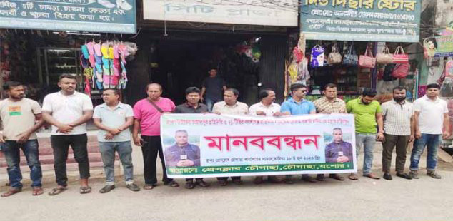 সাংবাদিক নাদিম হত্যাকারীদের শাস্তির দাবিতে চৌগাছায় মানববন্ধন অনুষ্ঠিত