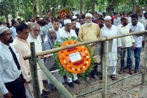 এরপর জেলা বিএনপির আহ্বায়ক অধ্যাপক নার্গিস বেগম দলীয় নেতৃবৃন্দকে সাথে নিয়ে তার কবরে ফুল দিয়ে শ্রদ্ধা নিবেদন করেন। কবর জিয়ারত ও শ্রদ্ধা নিবেদন শেষে অনিন্দ্য ইসলাম অমিত ও অধ্যাপক নার্গিস বেগম নিহত আশিকুর রহমান আকুলের স্বজনদের খোঁজ -খবর নেন। এছাড়া নগর বিএনপি,সদর উপজেলা বিএনপি,জেলা যুবদল, মৎস্যজীবী দল,নওয়াপাড়া ইউনিয়ন বিএনপির নেতৃবৃন্দ ফুল দিয়ে শ্রদ্ধা নিবেদন করেন। করব জিয়ারত ও শ্রদ্ধা নিবেদনের সময় উপস্থিত ছিলেন,জেলা বিএনপির যুগ্ম-আহ্বায়ক দেলোয়ার হোসেন খোকন, সদস্য মিজানুর রহমান খান,এ কে শরফুদ্দৌলা ছোটলু,আব্দুস সালাম আজাদ,মারুফুল ইসলাম,মুনির আহমেদ সিদ্দিকী বাচ্চু,কাজী আজম,সদর উপজেলা বিএনপির সাধারণ সম্পাদক আঞ্জুরুল হক খোকন,সাংগঠনিক সম্পাদক আব্দুর রাজ্জাক,আশরাফুজ্জামান মিঠু,নগর বিএনপির যুগ্ম-সম্পাদক জহিরুল আলম,সাংগঠনিক সম্পাদক ফারুক হোসেন, বিএনপি নেতা আব্দার হোসেন ,মীর নূর ইমাম,আলাউদ্দিন,আব্দুর রহিম, শাহজালাল,মশিয়ার রহমান,আনোয়ার হোসেন লাল্টু,আসাদুল আলম ঝন্টু,জেলা শ্রমিকদলের ভারপ্রাপ্ত সভাপতি আবু জাফর, জেলা যুবদলের সভাপতি এম তমাল আহমেদ,সাধারণ সম্পাদক আনসারুল হক রানা,সহসভাপতি আমিনুর রহমান মধু,সাংগঠনিক সম্পাদক কবির হোসেন বাবু,যুগ্ম-সম্পাদক নাজমুল হোসেন বাবুল,জেলা স্বেচ্ছাসেবক দলের সভাপতি রবিউল ইসলাম ,জেলা মৎস্যজীবীদলের আহ্বায়ক ইসমাইল হোসেন টেনিয়া, জেলা ছাত্রদলের সভাপতি রাজিদুর রহমান সাগর,সাংগঠনিক সম্পাদক শাহনেওয়াজ ইমরান, জেলা মৎস্যজীবীদলের আহ্বায়ক সিনিয়র যুগ্ম-আহ্বায়ক হাসানুজ্জামান বাবলু,যুবদল নেতা কামরুল হাসান শিমুল,এনামুল হক,মাহবুব আলম ছাত্রদল নেতা আল আমিন হোসেন প্রমুখ। এদিকে বাদ জোহর জেলা যুবদলের আয়োজনে বাইতুস সালাম জামে মসজিদে আশিকুর রহমান আকুলের রুহের মাগফিরাত কামনায় দোয়া মাহফিল অনুষ্ঠিত হয়। এছাড়া গ্রামবাসীর আয়োজনে বাদ আছর নওয়াপাড়া বিশ্বাস বাড়ি ও দীঘিরপাড় জামে মসজিদে দোয়া মাহফিল অনুষ্ঠিত হয়। পরিবারের পক্ষ থেকে উপশহর ই-ব্লকে তার বাসভবনে কুরআনখানি ও দোয়া মাহফিলের আয়োজন করা হয়।