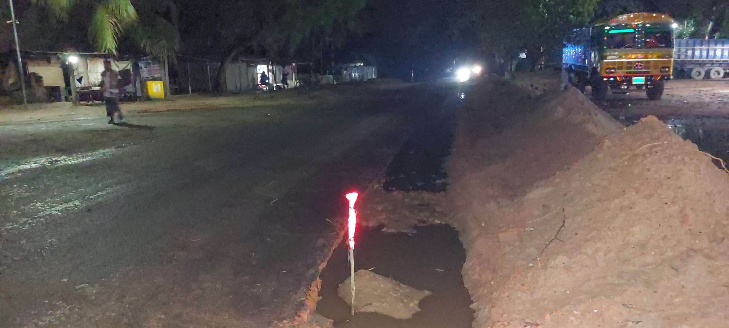 সরেজমিনে দেখা যায়, কোন রকম প্রতিরোধমূলক ব্যবস্থা না রেখেই সারাদিনরাত শ শ যানবাহন চলাচলকারী এ সড়কের দু’ধারে গর্ত খুঁড়ে রাখা হয়েছে। প্রতিরোধক হিসেবে গর্তের ধারে চারটি করে ইট ব্যবহার করা হচ্ছে। সতর্ক করার জন্যে বাঁশের লাঠির মাথায় লালটেপ জড়িয়ে কয়েক জায়গায় পুঁতে রাখা হয়েছে। তবে সড়কের কিছু অংশ ইটবালি মিশিয়ে ভরাট করলেও অন্য অংশে গর্ত রয়েই গেছে। রাতে সড়ক বাতি না থাকায় পুরো সড়ক অন্ধকারে নিমজ্জিত থাকছে। বৃষ্টি আর কাদা ও সড়কের দু’ধারের গর্তের কারণে এ সড়ক দিয়ে চলাচল ঝুঁকিপূর্ণ হয়ে গেছে। যে কোন মুহূর্তে দ্রুতগতির যানবাহন নিয়ন্ত্রণ হারিয়ে গর্তে পড়ে গিয়ে ভয়াবহ দুর্ঘটনা ঘটতে পারে। লোকনাথপুর বাজারের কয়েকজন ব্যবসায়ী বলেন, বড় বড় গর্ত খুঁড়ে রাখায় সড়ক পার হয়ে খদ্দের আসতে না পারায় তারা ক্ষতিগ্রস্ত হচ্ছেন। তাছাড়া গর্তের কারণে আবাসিক এলাকার বাসিন্দারা অন্ধকারে নির্বিঘেœ চলাচল করতে পারছেন না।
