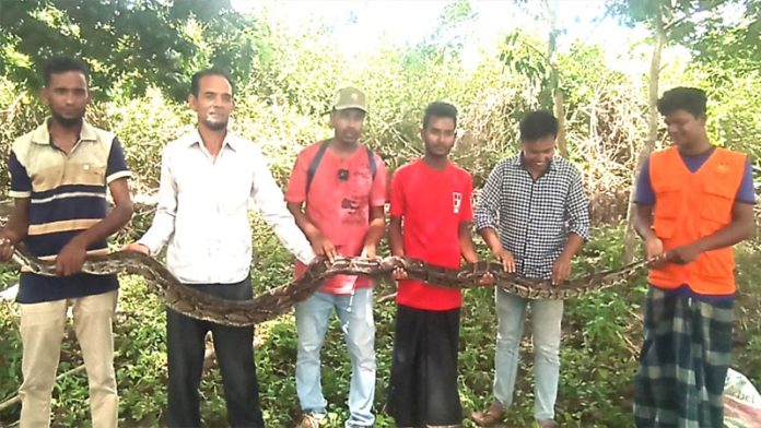 শরণখোলায় মুরগির ঘর ৩০ কেজি ওজনের অজগর উদ্ধার