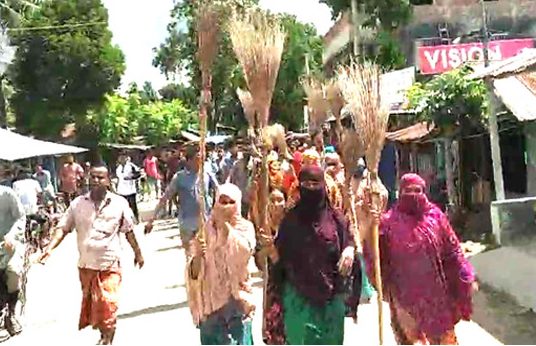 রোহিতায় মহিলাদের ঝাড়ু মিছিল দখলকৃত রাস্তা অবমুক্ত