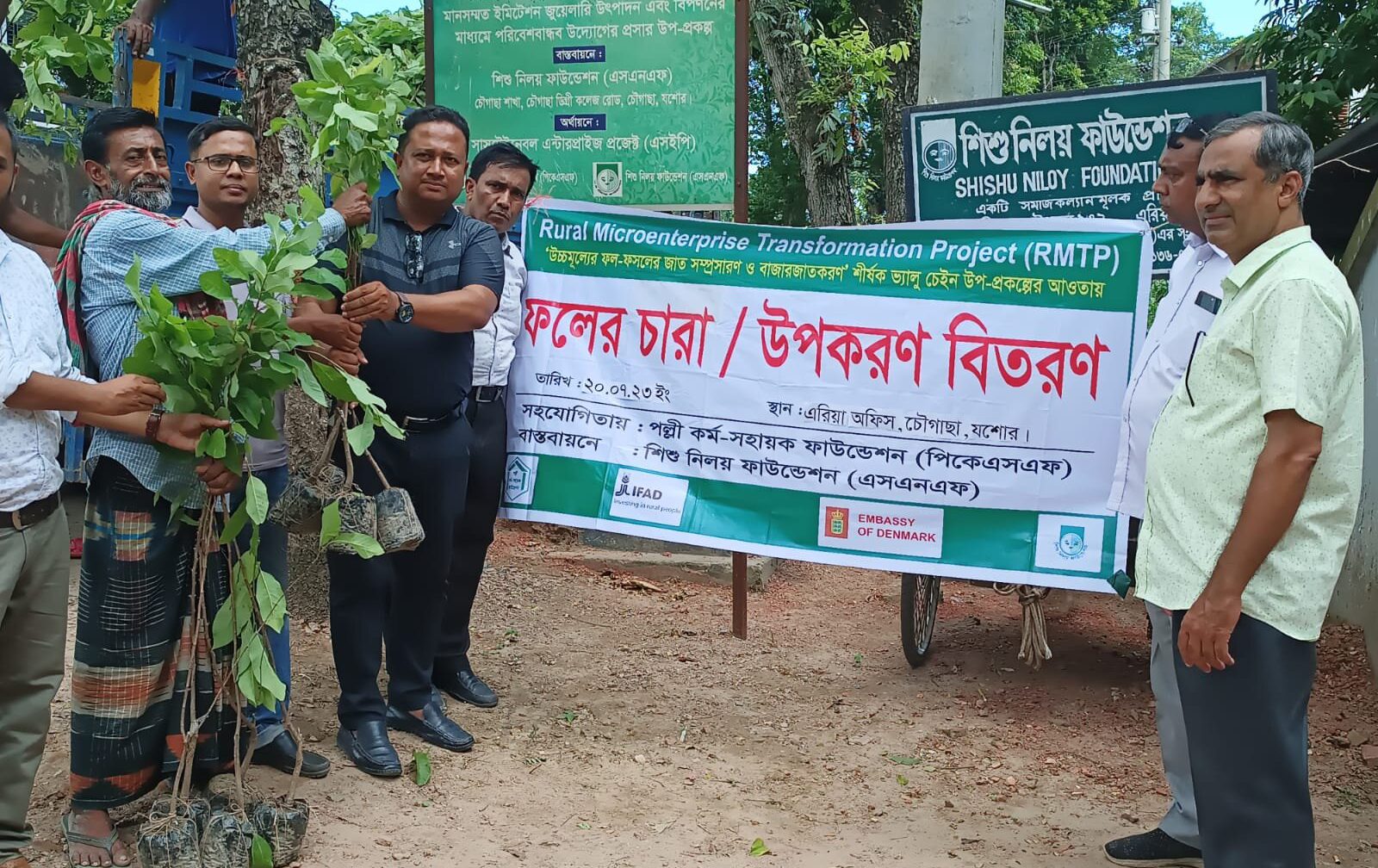স্টাফ রিপোর্টার, চৌগাছা (যশোর) ॥ চৌগাছায় পল্লী কর্মসহায়ক ফাউন্ডেশনের সহযোগিতায় ও শিশু নিলয় ফাউন্ডেশনের আরএমটিপি প্রকল্পের আওতায় ফল চাষিদের মাঝে সরিফা গাছের চারা বিতরণ করা হয়েছে। বৃহস্পতিবার (২০ জুলাই )দুপুরে শিশু নিলয় এরিয়া অফিসের সামনে চারা বিতরণ করা হয়।