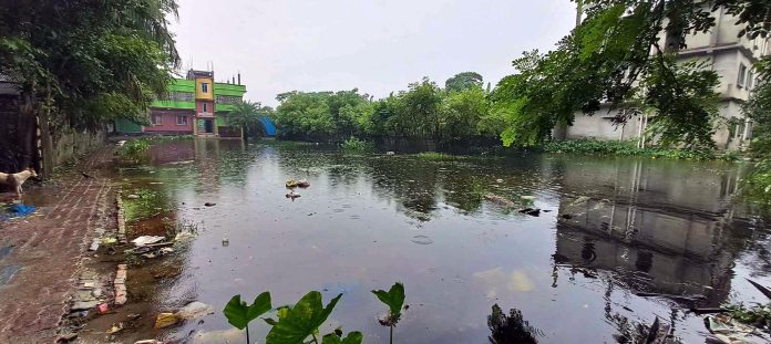 শরণখোলা (বাগেরহাট) সংবাদদাতা ॥ শরণখোলা উপজেলার কদমতলায় বৃষ্টির পানি আটকে জলাবদ্ধতা সৃষ্টি হয়েছে। বলেশ্বর নদের সঙ্গে সংযুক্ত লেকটি ভরাট হয়ে যাওয়ায় বৃষ্টির পানি নামতে পারছে না। তাছাড়া, ডোবা, নালা ভরাট করে অপরিকল্পিতভাবে বাড়িঘর নির্মাণ করায় পয়নিষ্কাশনের পথও বন্ধ হয়ে গেছে। এ কারণে উপজেলা স্বাস্থ্য কমপ্লেক্সের দক্ষিণ পাশ, আরকেডিএস বালিকা বিদ্যালয়ের পেছন, পুরাতন পোস্ট অফিস এবং মাদরাসা এলাকার পাঁচ শতাধিক পরিবার প্রায় এক সপ্তাহ ধরে পানিবন্দি অবস্থায় রয়েছে। নানা রকম পানিবাহিত রোগব্যাধি ছড়িয়ে পড়ারও আশঙ্কা দেখা দিয়েছে। রোববার দুপুরে এলাকা ঘুরে দেখা যায় এসব চিত্র দেখা যায় ।