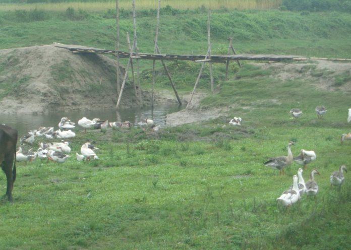 মুকুরুল ইসলাম মিন্টু, চৌগাছা (যশোর) ॥ চৌগাছার হাজরাখানা গ্রামের পাশ দিয়ে বয়ে চলা কপোতাক্ষ নদের ওপর নির্মিত বাঁশের সেই সাঁকোটির কোন চিহ্ন নেই। নদ খননের সময়ে নদে একটি বাঁধ দেয়া হয়। ওই বাঁধ দিয়ে যাতায়াত করছেন কয়েক গ্রামের মানুষ। বর্ষায় কোমলমতি শিশুরা ঝুঁকি নিয়ে যাচ্ছে বিদ্যালয়ে। সাঁকোর স্থানে একটি ব্রিজ নির্মাণের দাবি স্থানীয়দের।