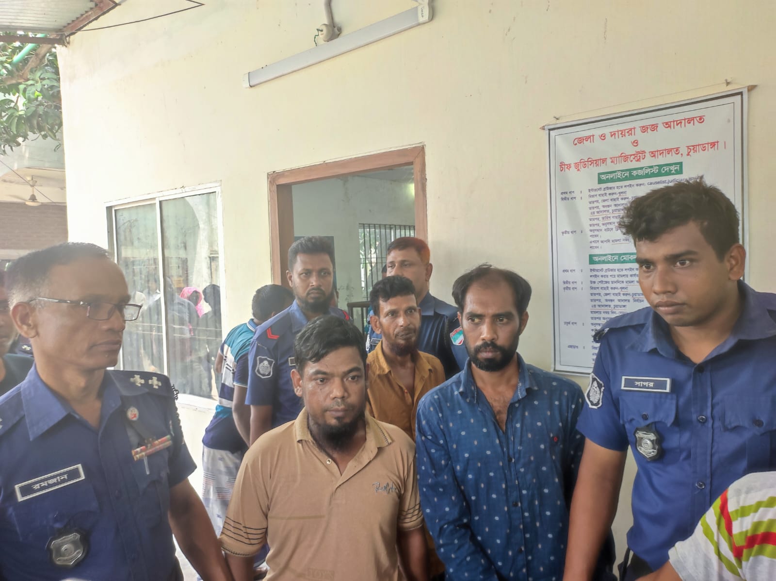 মৃত্যুদন্ডপ্রাপ্তরা হলেন, যশোর কতোয়ালি থানার চাঁচড়া রায়পাড়ার আব্দুস ছালামের ছেলে বর্তমান ঠিকানা চুয়াডাঙ্গা শহরের হকপাড়ার সাহেব আলীর ঘর জামাই পলাতক ফজলুর রহমান ফজলু, ঠাকুরগাঁও জেলার মাধবপুর শিমুলতলী কর্নপাড়ার গনেশচন্দ্র রায় ওরফে ঘটশ্যাম ওরফে বগার ছেলে এবং চুয়াডাঙ্গা শহরের গোরস্থানপাড়ার হোটেল ব্যবসায়ী আলেকের বাড়ির ভাড়াটিয়া দীপক কুমার রায় ওরফে শান্ত ওরফে অমর বর্মণ এবং গোপালগঞ্জ জেলার গাড়ইগাত গ্রামের শহীদুল ইসলাম মোল্লার ছেলে ও বর্তমান ঠিকানা চায়ের দোকানদার নুরু মোল্লার শাশুড়ির শহরের হকপাড়ার নাজমার বাড়ির ভাড়াটিয়া আবু সুফিয়ান ওরফে শান্ত মোল্লা। এদের প্রত্যেককে ২০ হাজার টাকা করে জরিমানা করা হয়েছে।