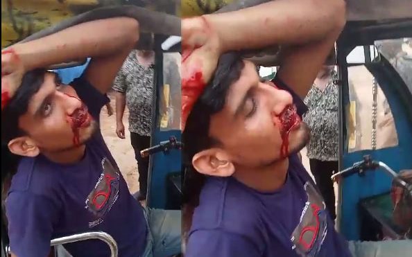 হাইওয়ে পুলিশের পিটুনিতে রক্তাক্ত ইজিবাইক চালক