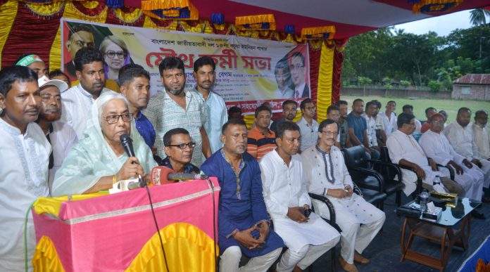 সভায় অধ্যাপক নার্গিস বেগম আরও বলেন,বিএনপি ক্ষমতার জন্যে রাজনীতি করে না। জনগণের জন্যে রাজনীতি করে। সেই জনগণের দাবি আদায় এবং তাদের অধিকার প্রতিষ্ঠার জন্যে বিএনপি দীর্ঘ এক যুগের অধিক সময় ধরে বর্তমান ফ্যাসিস্ট সরকারের বিরুদ্ধে আন্দোলন করছে। সেই আন্দোলন দাবিয়ে রাখার জন্যে দলের চেয়ারপার্সন সাবেক প্রধানমন্ত্রী বেগম খালেদা জিয়াকে মিথ্যা ভিত্তিহীন মামলার ফরমায়েশি রায়ে সাজা প্রদান করে। দলের লাখ লাখ নেতা কর্মীকে মিথ্যা মামলা দিয়ে হয়রানি করছে। তারা আজ গোটা দেশটাকে কারাগারে রূপান্তরিত করেছে। তারপরও বিএনপির নেতৃত্বে জনতার আন্দোলন থেমে নেই। দেশ ও মানুষ বাঁচানোর এই আন্দোলন চূড়ান্ত পর্যায়ে পৌঁছেছে। অচিরেই এই ফ্যাসিস্ট সরকারকে হটিয়ে জনগণের সরকার প্রতিষ্ঠা করবো ইনশাআল্লাহ।