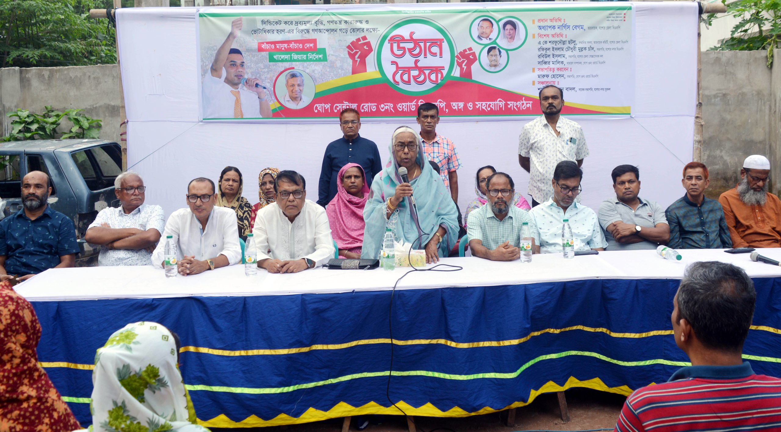 ওয়ার্ড বিএনপির সভাপতি এ এস এম মারুফ হোসেনের সভাপতিত্বে বৈঠকে অন্যান্যের মধ্যে বক্তব্য রাখেন,নগর বিএনপির সভাপতি রফিকুল ইসলাম চৌধুরী মুল্লুক চাঁদ,যুগ্ম-সম্পাদক জহিরুল আলম, সাংগঠনিক সম্পাদক মনিরুজ্জামান মাসুম, ফারুখ হোসেন, ওয়ার্ড বিএনপির সাধারণ সম্পাদক সাব্বির মালিক, সহসভাপতি আলী আশফাক লনি, যুগ্ম-সম্পাদক ফরহাদ হোসেন, বিএনপি নেতা আক্তার হোসেন,জেলা মহিলাদলের সহ-সাংগঠনিক সম্পাদিকা আনোয়ারা পারভিন আনু প্রমুখ। সভা পরিচালনা করেন বিএনপি নেতা শামিম হোসেন বাদল।