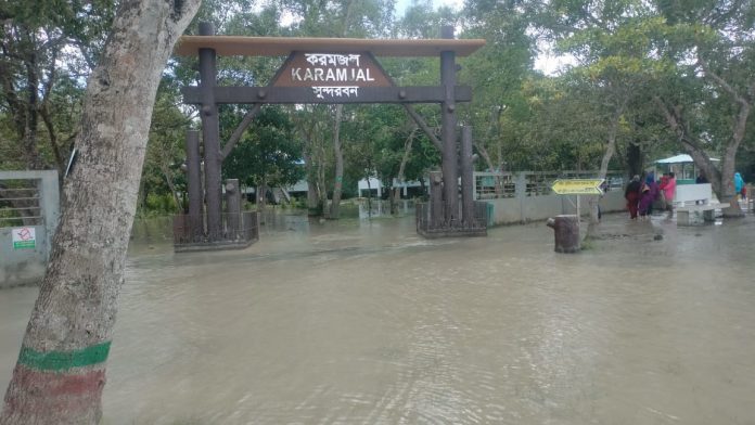 জোয়ারের পানিতে সুন্দরবনের পর্যটন কেন্দ্র প্লাবিত
