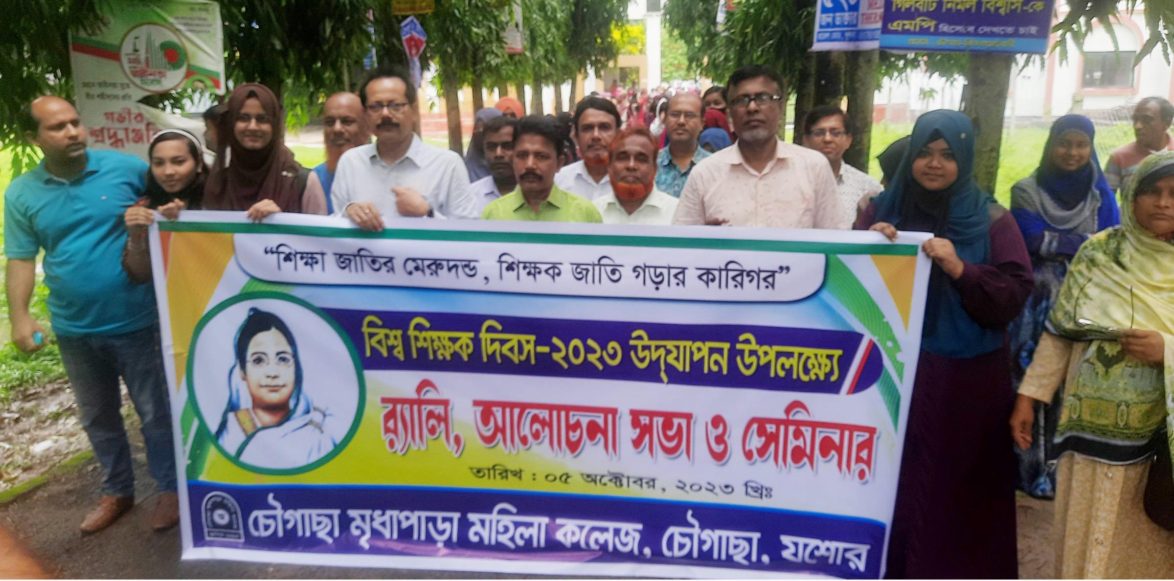 স্টাফ রিপোর্টার, চৌগাছা (যশোর) ॥ বিশ্ব শিক্ষক দিবস উপলক্ষে যশোরের চৌগাছা মৃধাপাড়া মহিলা কলেজে শোভাযাত্রা ও আলোচনা সভা অনুষ্ঠিত হয়েছে।