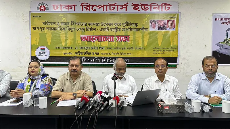 বৃহস্পতিবার দুপুরে ঢাকা রিপোর্টার্স ইউনিটি মিলনায়তনে বিএনপির মিডিয়া সেলের উদ্যোগে ‘পরিবেশ ও মানব-বিপর্যয়ের আশঙ্কা উপেক্ষা করে দুর্নীতিগ্রস্ত রূপপুর পারমাণবিক বিদ্যুৎ কেন্দ্র নির্মাণ- একটি রাষ্ট্রীয় অপরিণামদর্শিতা’ শীর্ষক আলোচনা সভায় এসব কথা বলেন। এতে সভাপতিত্ব করেন বিএনপির মিডিয়া সেলের আহ্বায়ক জহির উদ্দিন স্বপন।