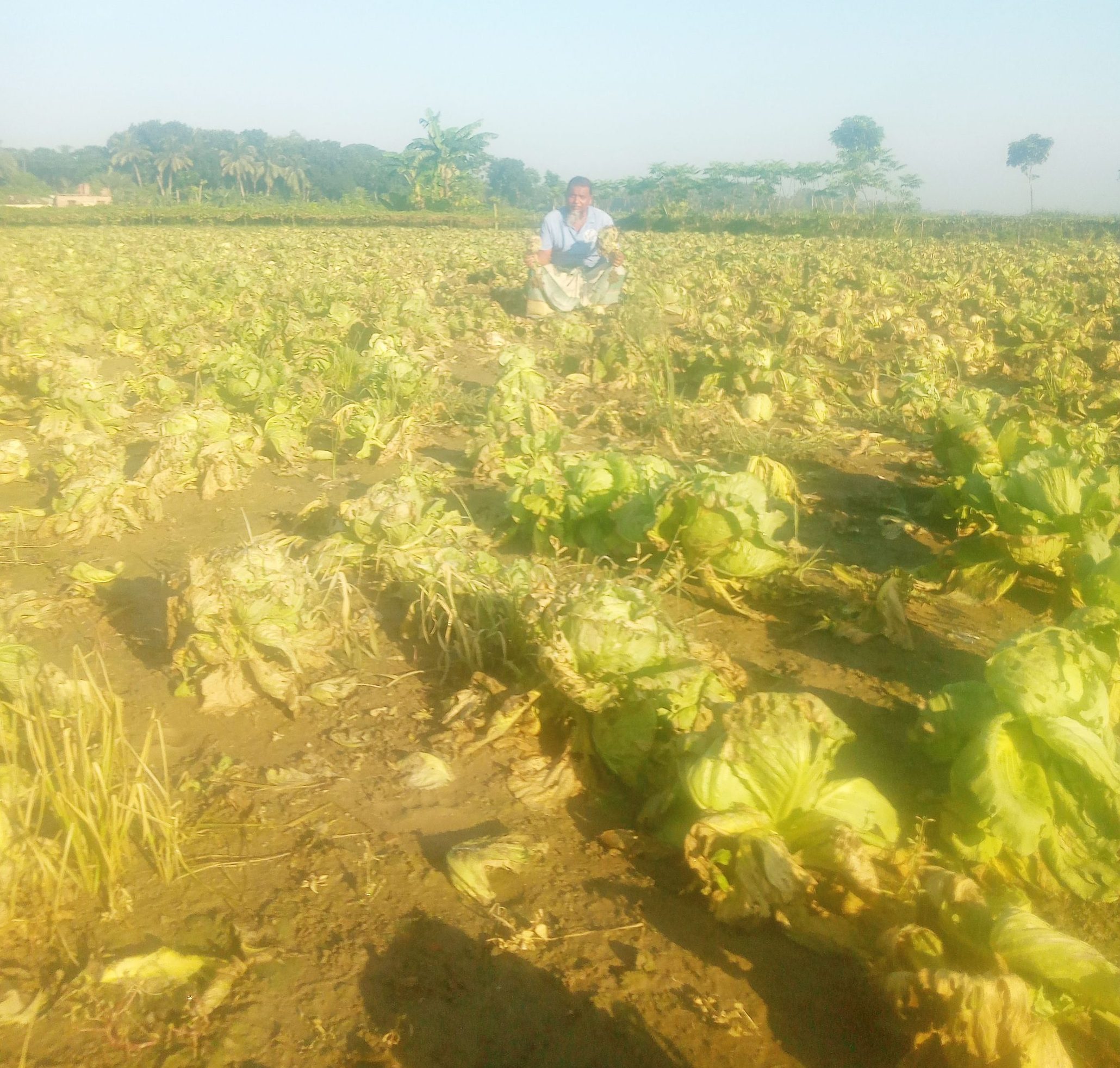 সরেজমিনে গিয়ে দেখা গেছে, ক্ষতিগ্রস্ত কৃষক আব্দুল মজিদ তার ক্ষেতের মাঝখানে মত বসে আছেন। ক্ষেতের সমস্ত কপি হলুদ বর্ণ হয়ে গেছে। কথা হয় কৃষক মজিদের সাথে। তিনি জানান, তার নিজ ৩ বিঘা জমিতে আগাম টপিকচান জাতের বাঁধা ও ফুল কপির চাষ করেছিলেন। ওই জমিতে তিনি ২০ হাজার কপির চারা রোপণ করেছিলেন। কপিগুলো সবেমাত্র ৫/৬শ গ্রাম ওজন হয়েছিল। কিন্তু গত কয়েকদিনের টাকা বৃষ্টিপাতের কারণে ক্ষেতের সমস্ত কপিতে পোকা লেগে হলুদ বর্ণ হয়ে গেছে।