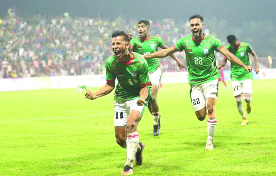 স্পোর্টস ডেস্ক॥ হারলেই এক বছরের জন্য ফুটবল থেকে নির্বাসন। আর জিতলেই বিশ্বকাপ বাছাইয়ের দ্বিতীয় রাউন্ডে। এমন ম্যাচে কী অসাধারণ ফুটবল উপহার দিলো বাংলাদেশ। ২০২৬ বিশ্বকাপ বাছাই রাউন্ড ওয়ানে মালদ্বীপকে হারিয়ে দ্বিতীয় রাউন্ডতে জায়গা করে নিয়েছে বাংলাদেশ।