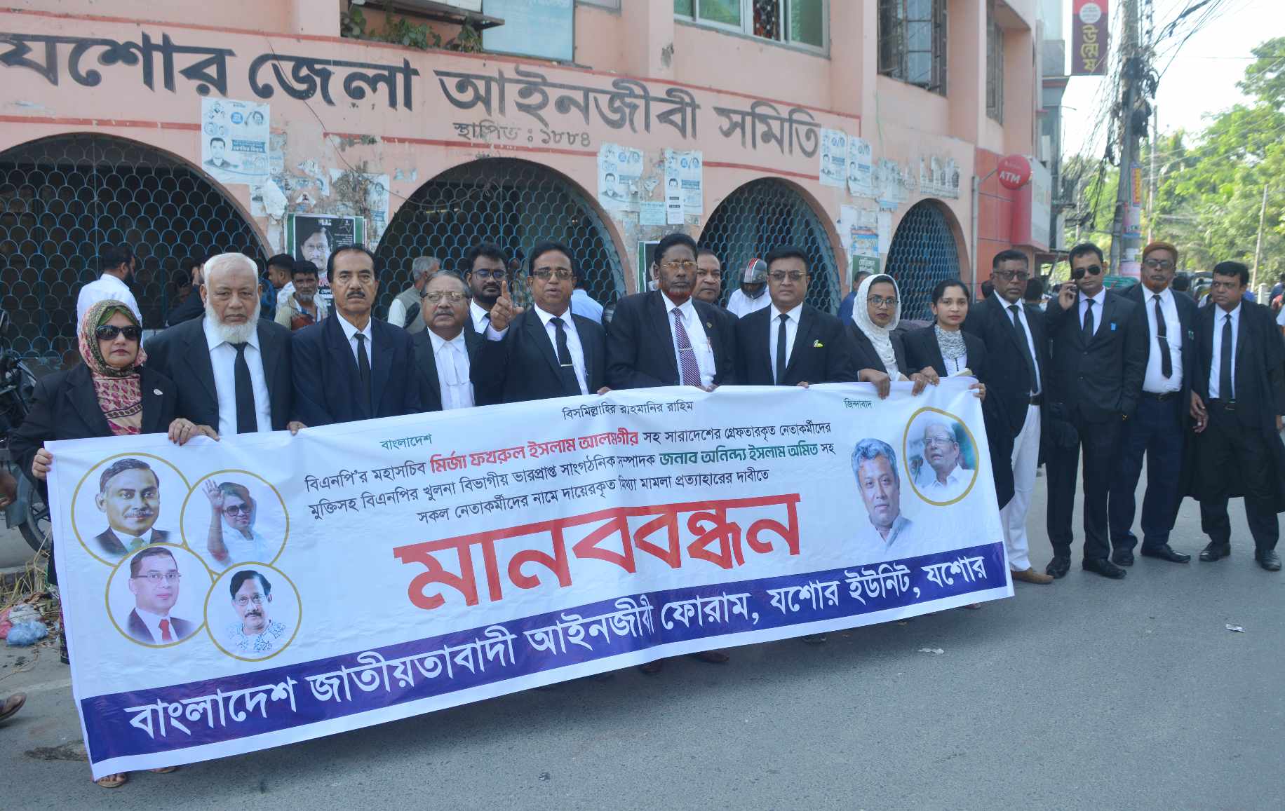 যশোরে জাতীয়তাবাদী আইনজীবী ফোরামের মানববন্ধন