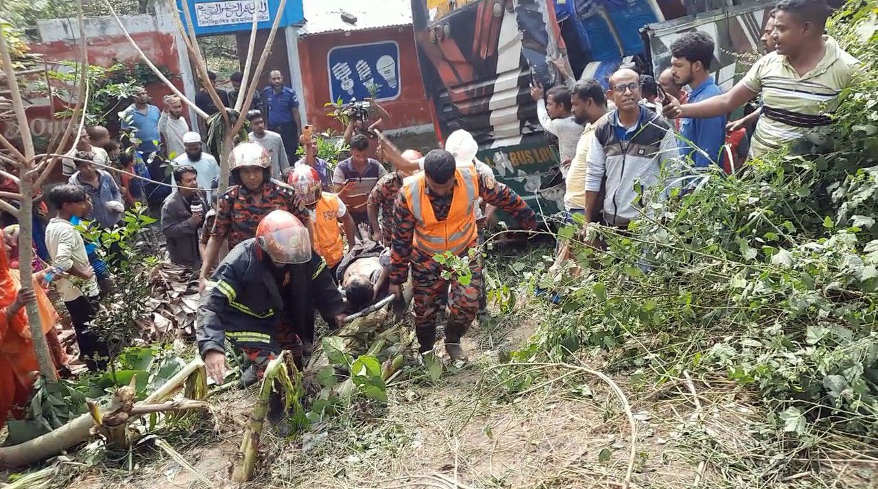 ঝিনাইদহে এক বাসের ধাক্কায় অপর বাস খাদে, আহত ১৬