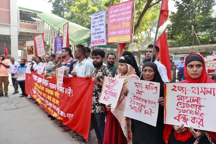ন্যূনতম মজুরি প্রত্যাখ্যান, শ্রমিক নিহতের বিচার দাবিতে বিক্ষোভ