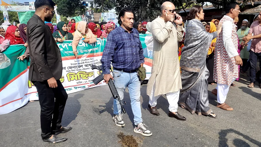 আ.লীগের মিছিলের সামনে আগ্নেয়াস্ত্র হাতে এক ব্যক্তি