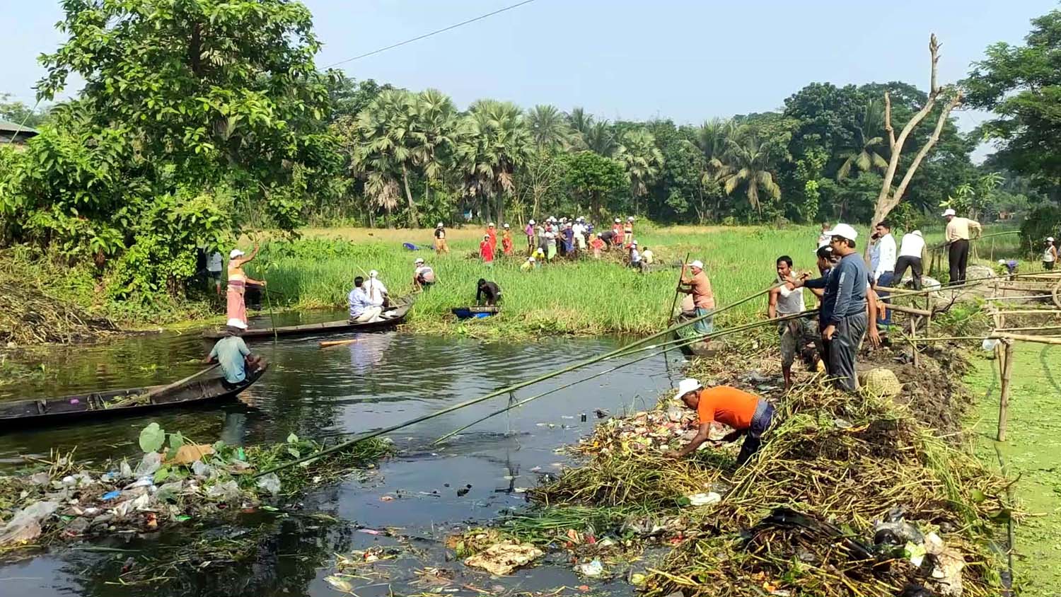 উপজেলা প্রশাসনের আহবানে গতকাল শনিবার সকাল ৯ টা থেকে বিকেল ৪ টা পর্যন্ত এলাকার নারী-পুরুষ, শিক্ষক-শিক্ষার্থী, স্কাউট, গ্রাম পুলিশ, এনজিও কর্মী, সরকারি কর্মকর্তা-কর্মচারী, ফায়ার সার্ভিস, স্থানীয় জনপ্রতিনিধি ও সাংবাদিকসহ প্রায় তিনশ মানুষ এ কাজে অংশ নেয়।