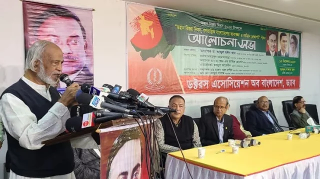 শুক্রবার বিকালে জাতীয় প্রেসক্লাবের মিলনায়তনে ডক্টরস এসোসিয়েশন অব বাংলাদেশের (ড্যাব) উদ্যোগে ‘মহান বিজয় দিবস, গণতান্ত্রিক বাংলাদেশের আকাঙ্ক্ষা ও বর্তমান প্রেক্ষাপট‘ শীর্ষক এক আলোচনা সভায় এসব কথা বলেন তিনি।
