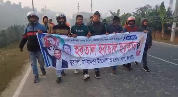 এদিন সকাল থেকে দলীয় নেতা-কর্মীরা হরতালের সমর্থনে সড়ক-মহাসড়কে নেমে আসেন। তারা সেখানে শান্তিপূর্ণভাবে অবস্থান নিয়ে মিছিল স্লোগানের মাধ্যমে রাজপথকে প্রকম্পিত করেন। শনিবার সকালে যশোর শহরের আর. এন রোডে, নগর বিএনপি, অঙ্গ-সহযোগী সংগঠনের (১, ২ ও ৩ নং ওয়ার্ড) এবং মুজিব সড়কে ( ৪, ৫ ও ৬ নং ওয়ার্ড) শাখা হরতালের সমর্থনে পৃথক মিছিল করে। জেল রোডে নগর স্বেচ্ছাসেবক দল মিছিল করে। যশোর- নড়াইল সড়কে যশোর সদর উপজেলার ফতেপুর ইউনিয়ন বিএনপি, অঙ্গ-সহযোগী সংগঠন হরতালের সমর্থনে মিছিল করে। যশোর-খুলনা মহাসড়কে সদর উপজেলার  রামনগর ইউনিয়ন বিএনপি, অঙ্গ ও সহযোগী সংগঠন মিছিল করে। নওয়াপাড়া পৌর  সদরে অভয়নগর বিএনপির যুগ্ম-আহবায়ক কাজী গেলাম হায়দার ডাবলুর  নেতৃত্বে দলীয় নেতা-কর্মীরা মিছিল করেন। মনিরামপুর- কেশবপুর সড়কে মনিরামপুর উপজেলা ও পৌর যুবদল মিছিল। এদিকে শনিবার সকাল থেকে খুলনা- ঢাকা মহাসড়কের হরিনটানা গেটে খুলনা জেলা বিএনপি, অঙ্গ-সহযোগী সংগঠন মিছিল করে । শ্যামনগর উপজেলা বিএনপি উপজেলা সদরে হরতালের সমর্থনে মিছিল করে।