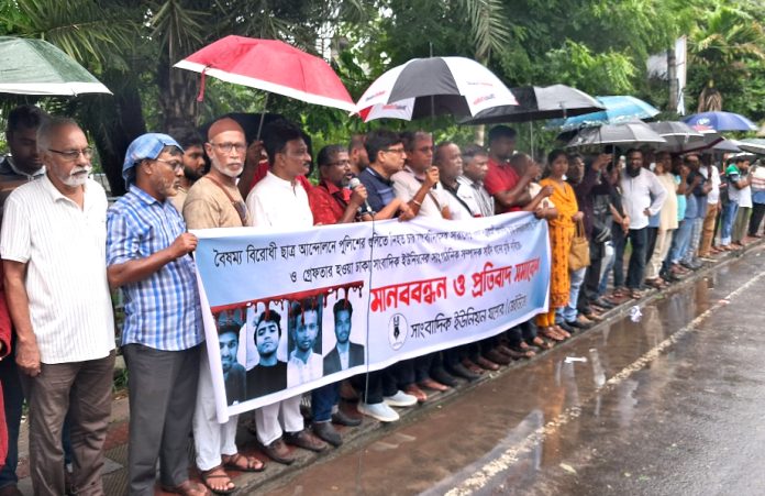শনিবার প্রেস ক্লাব যশোরের সামনে প্রথমে সচেতন শিক্ষক সমাজ যশোর বিক্ষোভ সমাবেশ করে। পরে একই স্থানে বৈষম্যবিরোধী ছাত্র আন্দোলনসহ পুলিশের গুলিতে নিহত চার সাংবাদিক হত্যার প্রতিবাদে এবং গ্রেফতার হওয়া ঢাকা সাংবাদিক ইউনিয়ন-ডিইউজের সাংগঠনিক সম্পাদক সাঈদ খানের মুক্তির দাবিতে সাংবাদিক ইউনিয়ন যশোর সমাবেশ করে।