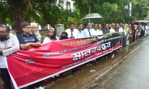 যশোরে ছাত্রদের আন্দোলন সমর্থনে রাজপথে শিক্ষক ও সাংবাদিকরা
