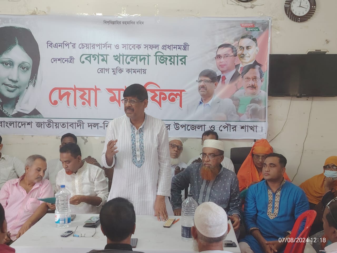 পৌর বিএনপির সভাপতি সাবেক মেয়র আব্দুস সামাদ বিশ্বাসের সভাপতিত্বে উপজেলার যুগ্ম আহ্বায়ক মাসুদুর রহমান মাসুদের সঞ্চালনায় প্রধান অতিথির বক্তব্য দেন কেন্দ্রীয় বিএনপির অন্যতম সদস্য আবুল হোসেন আজাদ। পরামর্শমূলক বক্তব্য রাখেন উপজেলা আহবায়ক মশিয়ার রহমান, যুগ্ম আহ্বায়ক আব্দুর রাজ্জাক, পৌর বিএনপির সাধারণ সম্পাদক শেখ শহীদুল ইসলাম, সহসভাপতি কুতুবুদ্দিন বিশ্বাস, সাংগঠনিক সম্পাদক নুরুজ্জামান, উপজেলা বিএনপির যুগ্ম আহ্বায়ক রেজাউল ইসলাম, হুমায়ুন কবীর সুমন প্রমুখ। সভায় কেন্দ্রীয় বিএনপির নির্বাহী কমিটির সদস্য আবুল হোসেন আজাদের গাড়ি, উপজেলা বিএনপির যুগ্ম আহ্বায়ক হুমায়ুন কবীর সুমন, পৌর বিএনপির যুগ্ম সম্পাদক আব্দুল হালিম অটল, পৌর স্বেচ্ছাসেবক দলের আহ্বায়ক জাহাঙ্গীর হোসেন পলাশ ও পৌর যুবদলের যুগ্ম আহ্বায়ক সাজ্জাদুল কবীর মিলটনের ওপর হামলার তীব্র নিন্দা ও প্রতিবাদ জানানো হয়।