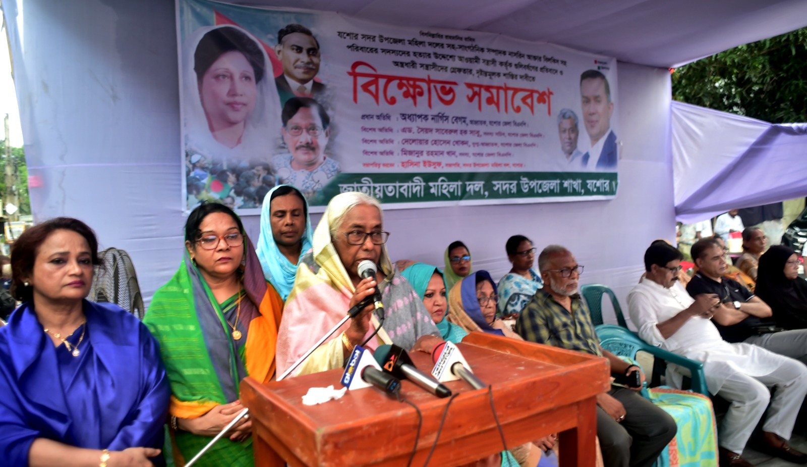 যশোর সদর উপজেলা মহিলা দলের সহ-সাংগঠনিক সম্পাদক নাসরিন আক্তার বিলকিসসহ পরিবারের সদস্যদের আওয়ামী লীগের সন্ত্রাসী কর্তৃক গুলি করে হত্যার প্রচেষ্টার প্রতিবাদে সদর উপজেলা মহিলা দল আয়োজিত বিক্ষোভ সমাবেশে প্রধান অতিথির বক্তৃতায় তিনি এ কথা বলেন।