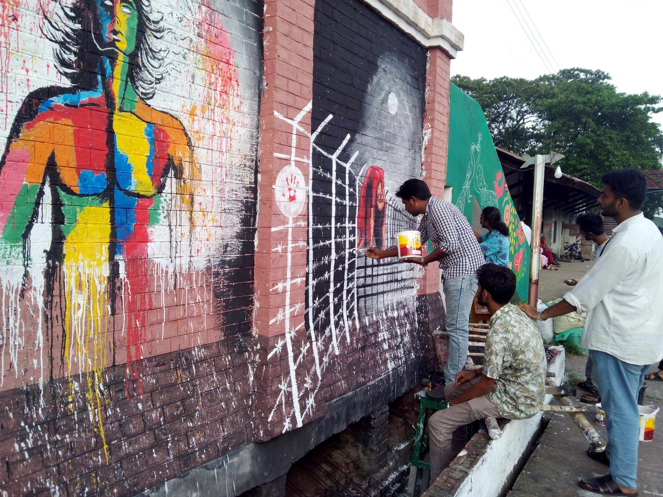 নওয়াপাড়ায় দেয়ালে দেয়ালে প্রতিবাদের গ্রাফিতি