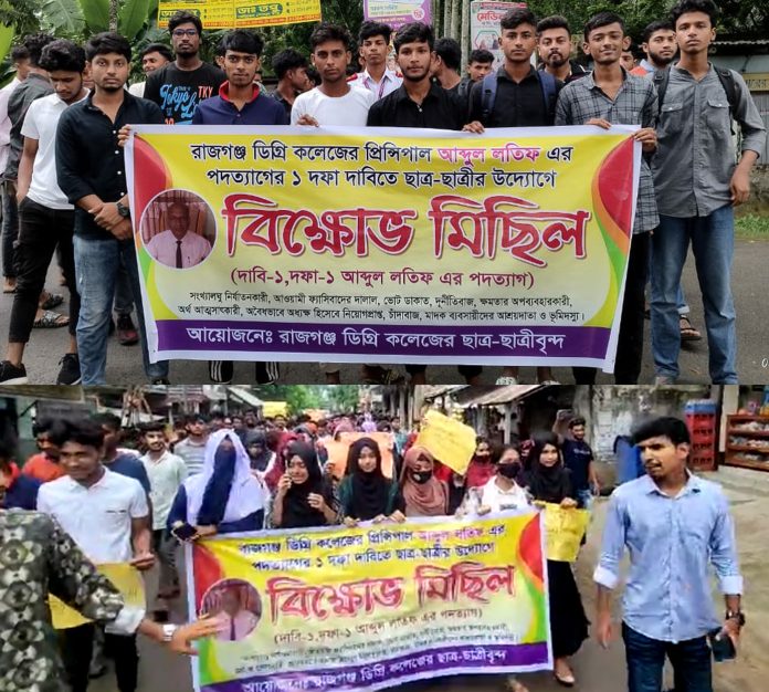 রাজগঞ্জ ডিগ্রি কলেজের অধ্যক্ষের পদত্যাগের দাবিতে বিক্ষোভ