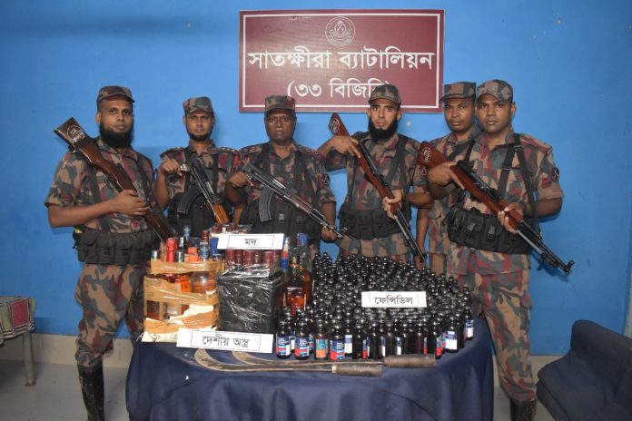 কলারোয়া সীমান্তে বিজিবির অভিযানে ফেনসিডিল ও মদ উদ্ধার