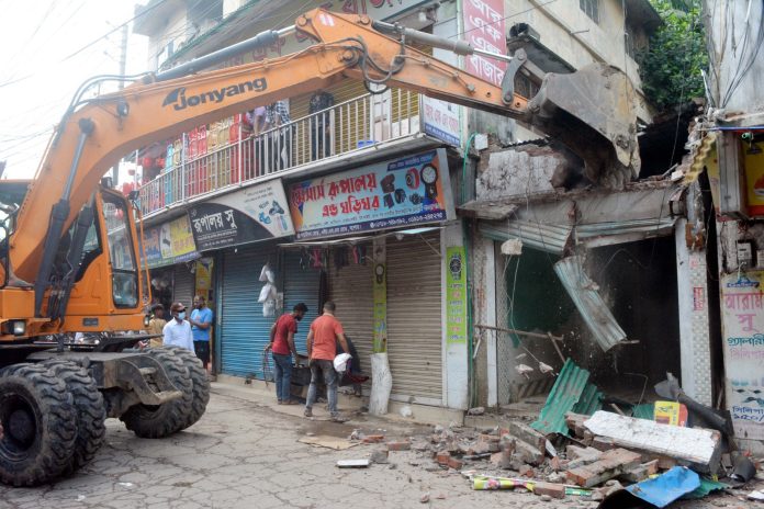ড্রেন দখল করে তৈরি যুবলীগ নেতার স্থাপনা গুড়িয়ে দিয়েছে যশোর পৌরসভা