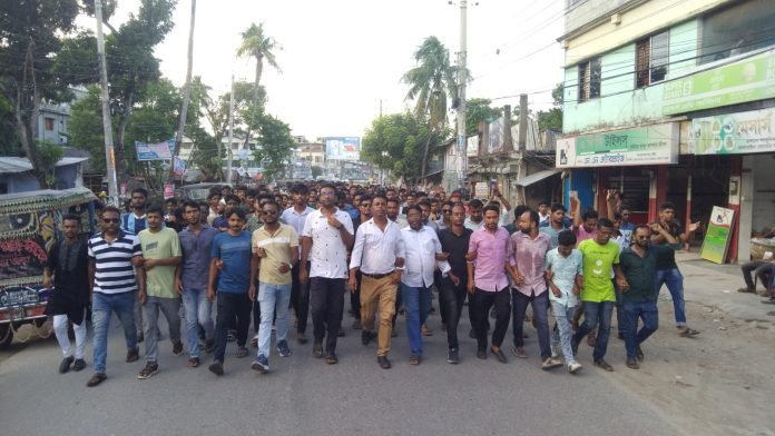 গতকাল সোমবার বিকেলে রূপগঞ্জ বাসস্ট্যান্ড থেকে মিছিল বের হয়ে শহরের গুরুত্বপূর্ণ সড়ক প্রদক্ষিণ শেষে প্রেসক্লাব চত্বরে এসে শেষ হয়। মিছিলে জাতীয়তাবাদী ছাত্রদল জেলা শাখার সভাপতি ফরিদ হোসেন বিশ^াস, ৪নং ওয়ার্ড বিএনপির সভাপতি জহুরুল ইসলাম, জেলা ছাত্রদলের সহসভাপতি বিপ্লব হাসান,জসিম উদ্দিন জোসেফ,সিনিয়র যুগ্ম সাধারণ সম্পাদক মেহেদী হাসান সবুজ, সদর উপজেলা আহবায়ক মামুন গাজী,যুগ্ম আহবায়ক হাবিবুর রহমান, খোকন শেখ, নড়াইল পৌর ছাত্রদলের সদস্য সচিব জয়নুল আবেদীন,সরকারি ভিক্টোরিয়া কলেজ ছাত্রদলের আহবায়ক আরিফ হাসান,শাহাবাদ আলিয়া মাদ্রাসার আহবায়ক রুবেল হাসান প্রমুখ উপস্থিত ছিলেন।