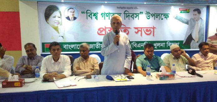 ‘বিশ্ব গণতন্ত্র দিবস’ উপলক্ষ্যে আগামী ১৫ সেপ্টেম্বর দুপুরে ২টায় শোভাযাত্রা ও সংক্ষিপ্ত সমাবেশ সফলে বৃহস্পতিবার সকালে খুলনা মহানগরীর একটি অভিজাত হোটেলে বিভাগীয় বিএনপির প্রস্তুতিসভায় প্রধান অতিথির বক্তৃতায় তিনি এসব কথা বলেন। খুলনা মহানগর বিএনপি নেতা এস এম শফিকুল আলম মনা এতে সভাপতিত্ব করেন।