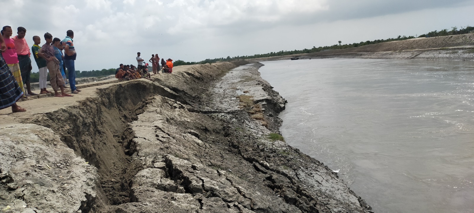 পাইকগাছায় কপোতাক্ষে বেড়িবাঁধে ভাঙন আশ্রয়ণ কেন্দ্রের ৬০ পরিবার চরম ঝুঁকিতে