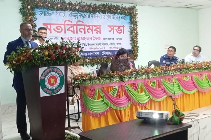 বৃহস্পতিবার দুপুরে চৌগাছা উপজেলা পরিষদের হলরুমে উপজেলা পর্যায়ে বিভিন্ন দফতরের কর্মকর্তা ও সুধীজনের সাথে মতবিনিময় সভায় প্রধান অতিথির বক্তব্যকালে জেলা প্রশাসক আজাহারুল ইসলাম বলেন, আমরা সবাই জনগণের সেবক। মানুষ যেন সেবা নিতে এসে বঞ্চিত না হয় সেদিকে নজর রাখতে হবে। সীমান্তবর্তী উপজেলা হওয়ার কারণে এখানে মাদকের কারবার চলে উল্লেখ করে তিনি বলেন, চৌগাছাতে শিক্ষার হার খুবই কম। তাই আপনারা সকলে মিলে শিক্ষার হার বৃদ্ধি করুন দেখবেন এক সময় সমাজ হতে মাদক নির্মূল হয়ে গেছে।