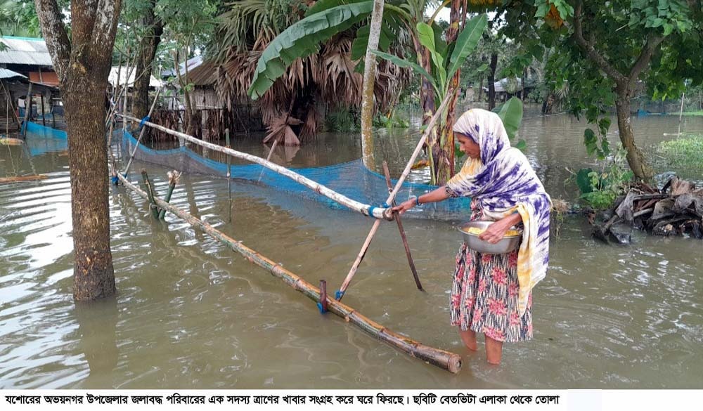 নজরুল ইসলাম মল্লিক, অভয়নগর (যশোর)॥ টানা বৃষ্টিপাত থেমে গিয়ে আকাশে ঝলমলে রোদের দেখা মিলেছে। কিন্তু ভয়াবহ দুর্ভোগ বেড়েছে যশোরের অভয়নগর উপজেলার পানিবন্দি মানুষের। বৃষ্টিপাত থেমে গেলেও কমছে না আবদ্ধ পানি। আগেই বৃষ্টির পানিতে ভেসে গেছে মাছের ঘের, তলিয়ে গেছে বসতভিটাসহ ফসলি ক্ষেত। গবাদিপশু নিয়ে বিপাকে পড়েছেন পানিবন্দি মানুষ। স্কুল- কলেজের অস্থায়ী আশ্রয় কেন্দ্রে আশ্রয় নিয়েছেন শ শ পরিবার।