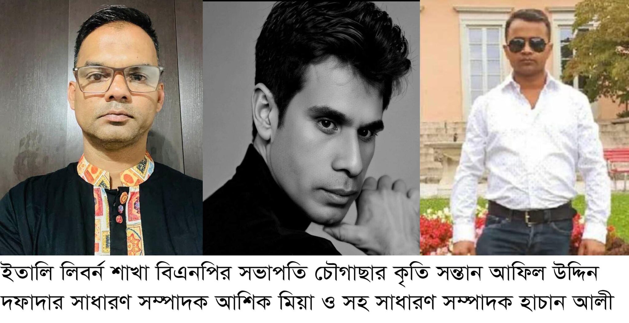 স্টাফ রিপোর্টার, চৌগাছা (যশোর) ।। ইতালির লিভর্ন শাখা বিএনপির নতুন কমিটি গঠন করা হয়েছে। ৪২ সদস্য বিশিষ্ট কমিটির সভাপতি নির্বাচিত হয়েছেন যশোরের চৌগাছার কৃতী সন্তান আফিল উদ্দিন দফাদার। সাধারণ সম্পাদক হয়েছেন অপর বাংলাদেশি আশিক মিয়া ও সহসাধারণ সম্পাদক হয়েছেন হাসান আলী।