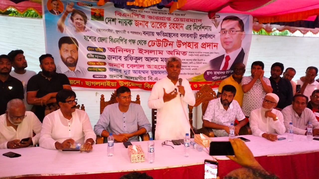 স্টাফ রিপোর্টার ॥ ভারপ্রাপ্ত চেয়ারম্যান তারেক রহমানের নির্দেশনায় ফেনীর বন্যাদুর্গত মানুষের পুনর্বাসন সহায়তা দিয়েছে যশোর জেলা বিএনপি। বুধবার ফেনীর পশুরাম, ফুলগাজী ও ছাগলনাইয়া উপজেলায় বন্যায় ক্ষতিগ্রস্তদের গৃহনির্মাণের জন্য উপহার হিসেবে টিন তুলে দেন বিএনপির জাতীয় নির্বাহী কমিটির ভারপ্রাপ্ত সাংগঠনিক সম্পাদক (খুলনা বিভাগ) অনিন্দ্য ইসলাম অমিত। এ সময় তিনি বলেন, বাংলাদেশ জনগণ শেখ হাসিনা ও আওয়ামী সন্ত্রাসীদের দেশ থেকে বিতাড়িত করেছে। জনগণ যাদেরকে বিতাড়িত করেছে তাদের আশ্রয় প্রশয় দেওয়া মানে জনগণের বিপক্ষে দাঁড়ানো। তাই ১৬ বছর দাপিয়ে বেড়ানো সন্ত্রাসীদের জনগণের মুখোমুখি হতে দেবে না বিএনপি।