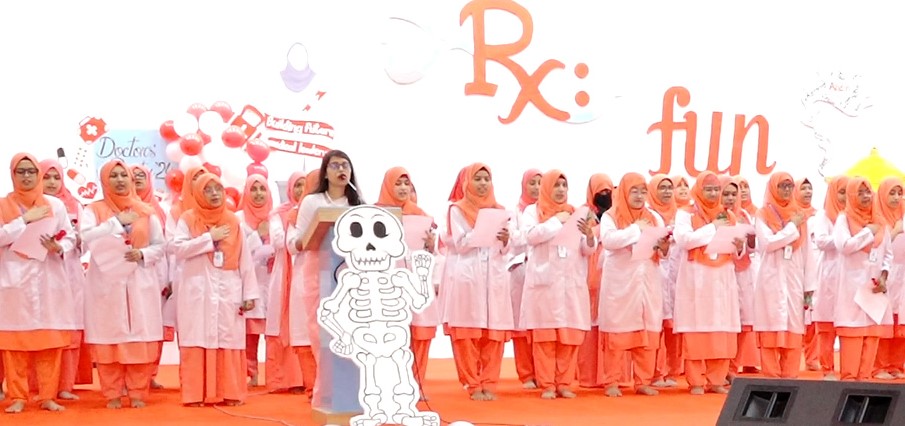 এমবিবিএস ২০২৩-২৪ শিক্ষাবর্ষের ১৩তম ব্যাচে ভর্তিকৃত ১ম বর্ষের দেশি-বিদেশি ছাত্রীদের আনুষ্ঠানিকভাবে বরণ করে নিলেন মেডিকেল কলেজ কর্তৃপক্ষ ও সিনিয়র শিক্ষার্থীরা। যা এই মেডিকেল কলেজের ঐতিহ্য। অনুষ্ঠানে বক্তব্য রাখেন আদ্-দ্বীন ফাউন্ডেশনের নির্বাহী পরিচালক ডা. শেখ মহিউদ্দিন।
