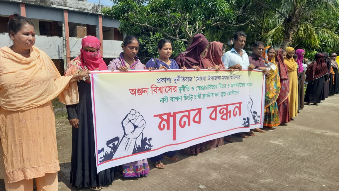 মোংলা মৎস্য কর্মকর্তাও অপসারণের দাবিতে নারী চাষিদের মানববন্ধন