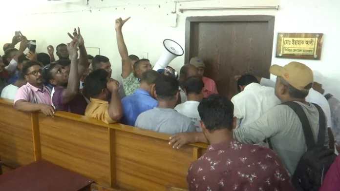 হয়রানিমূলক বদলির প্রতিবাদে যশোর পল্লী বিদ্যুৎ সমিতির ম্যানেজারের কক্ষে তালা