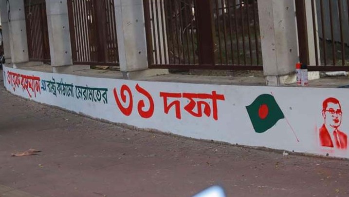 ৩১ দফা নিয়ে দেয়াল লিখন ছাত্রদলের