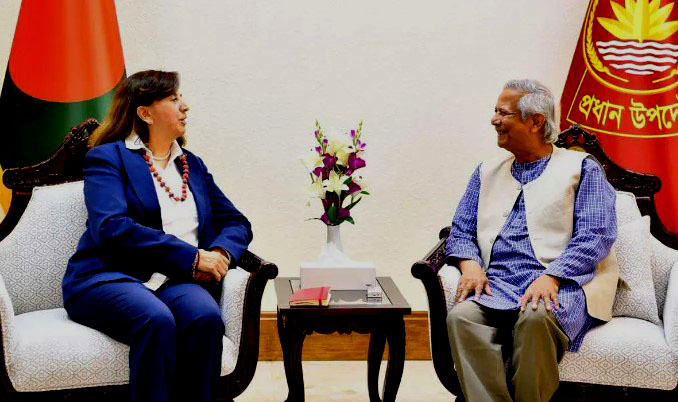 বুধবার (৬ নভেম্বর) দুপুরে ঢাকার তেজগাঁওয়ে প্রধান উপদেষ্টার সঙ্গে সাক্ষাৎ করেন ঢাকায় নিযুক্ত ইইউর রাষ্ট্রদূত মাইকেল মিলার এবং সফররত এক্সটার্নাল অ্যাকশন সার্ভিসের এশিয়া ও প্যাসিফিক বিভাগের পরিচালক পাওলা পামপোলিনি।