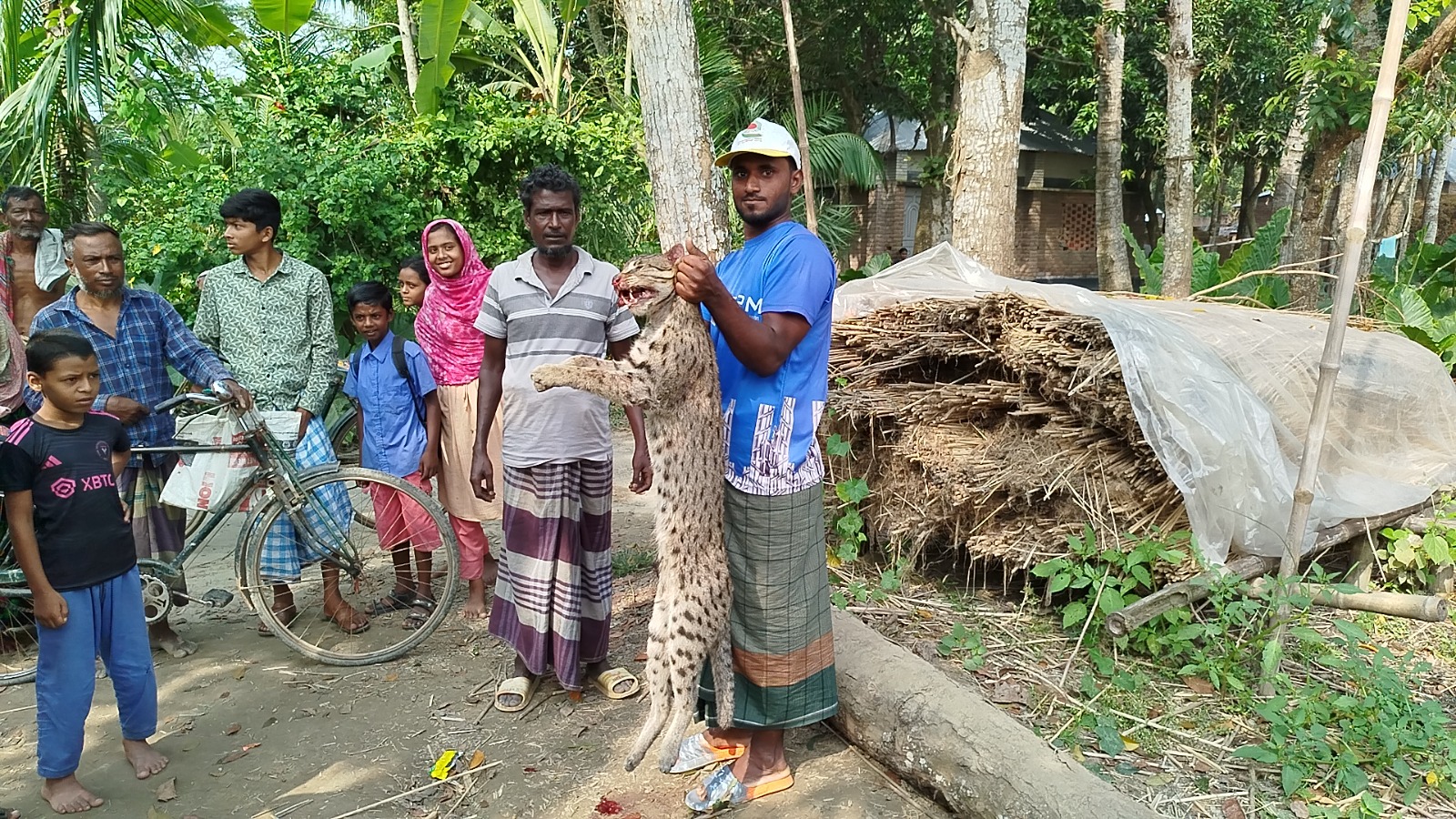 ওই গ্রামের কলেজ ছাত্র আসমাউল জানান, সোমবার রাতে ওই গ্রামের কালু নামের এক কৃষকের গোয়ালে ঢুকে মেছো বাঘটি দুটি ছাগল মেরে ফেলে। সকালে মৃত অবস্থায় দেখার পর তারা বুঝতে পারে মেছো বাঘ ছাগল দুটি মেরে ফেলেছে। মঙ্গলবার রাতে তার বাড়িতে আবার এসে মেছো বাঘটি মুরগির ঘরে প্রবেশ করে। বাড়ির লোকজন টের পেয়ে ধাওয়া করলে ঘরের পাশে জালে আটকা পড়ে সেটি। পরে গ্রামবাসী বাঘটিতে পিটিয়ে হত্যা করে।